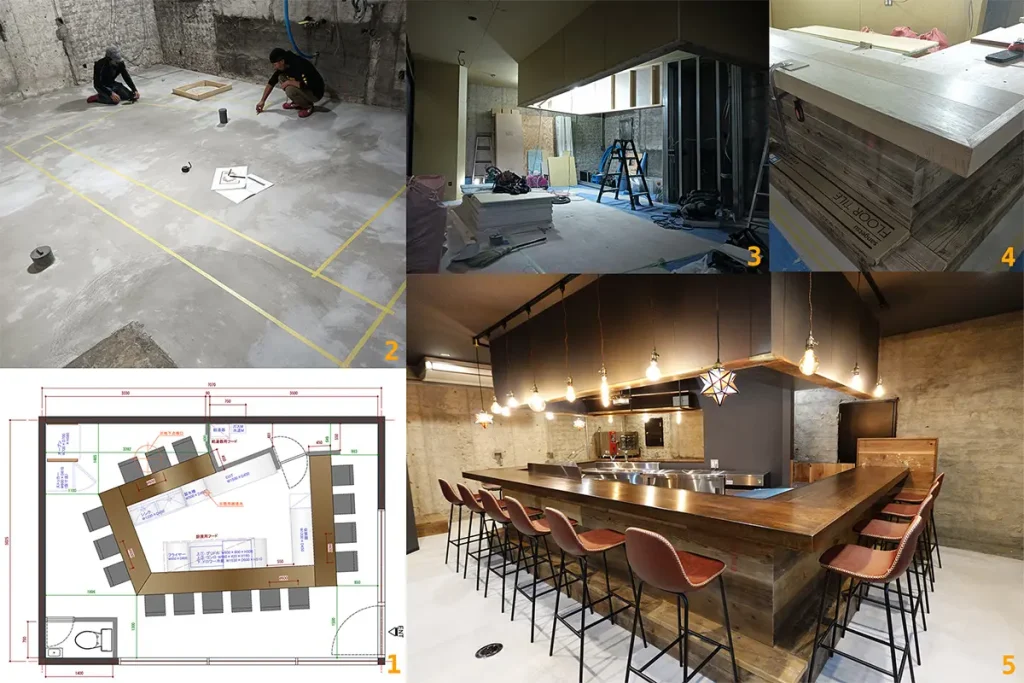 物件契約前の設備等の内装チェックから始まり、融資の際の事業計画書のアドバイス、開業までのスケジュール管理、設計、デザイン、見積り…etc